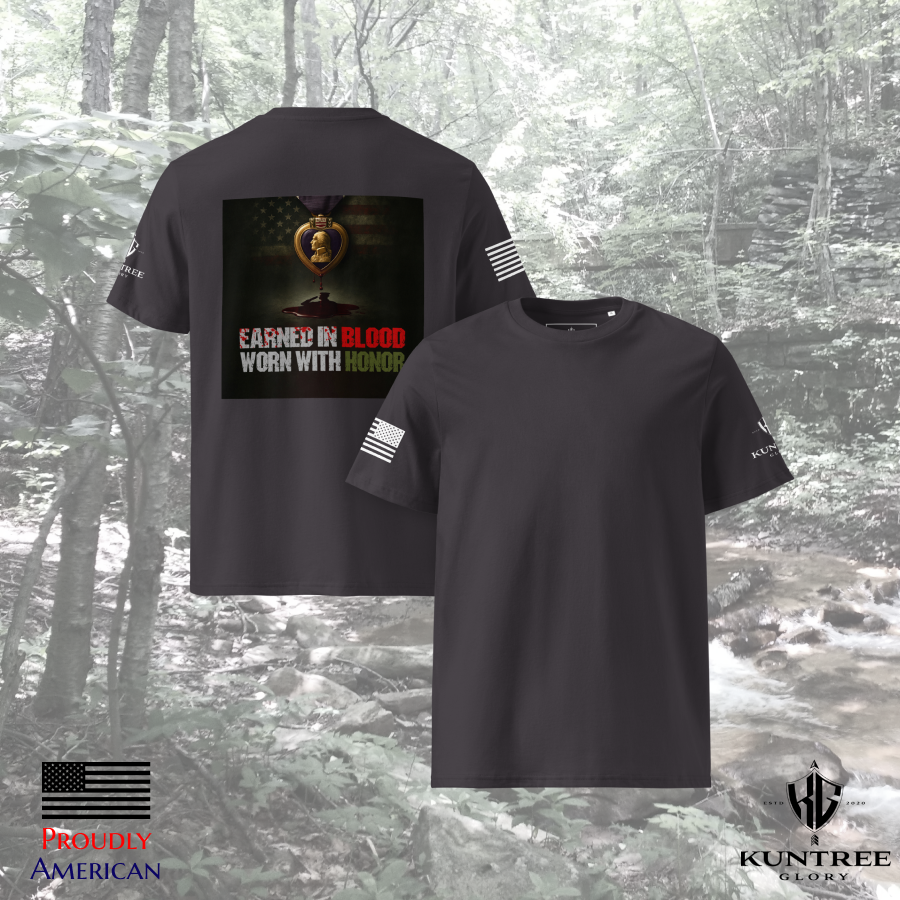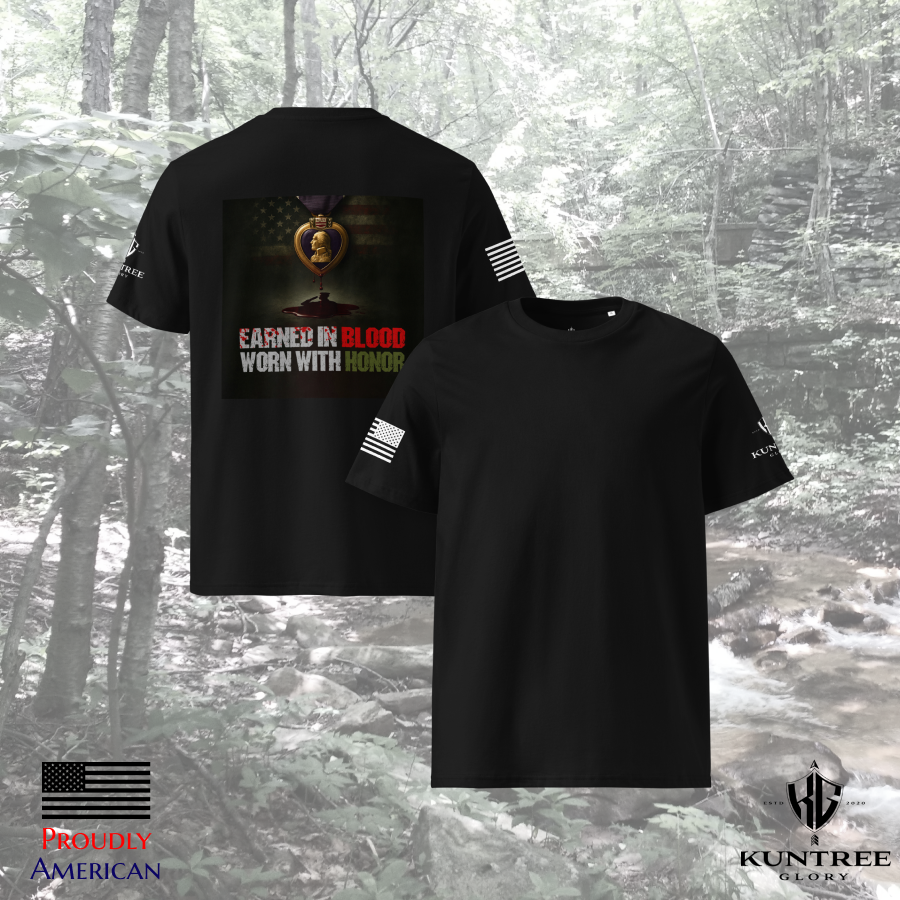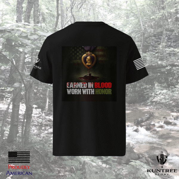 Freedom isn’t free—it’s Earned in Blood. This design reflects the ultimate price paid and the honor carried by those who defended it.